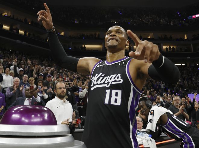 国王队今年也是备受瞩目的队伍,一方面他们拥有小萨博尼斯、拉文和德罗赞等巨星,另一方面则是引入了威少,人气值拉满。不过开赛季他们表现不佳,一度是1胜4负开局。今天他们客场挑战国王队,则是一改低迷的状态,多点开花彻底爆发,最后逆转雄鹿队,全场135-133险胜对手。赢得比赛胜利的同时,威少也迎来了高光时刻,就在今天,37岁威少爆发了,又创造新纪录,成NBA历史第一人。
