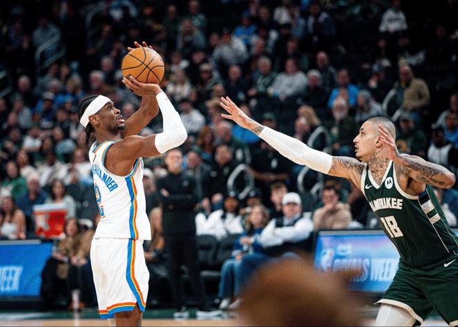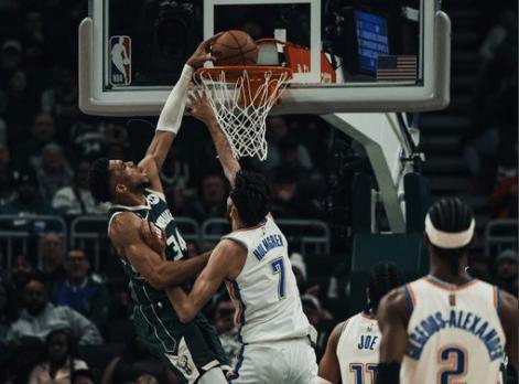 NBA常规赛,雄鹿坐镇主场迎击雷霆。本场比赛之前,雷霆36胜8负排名西部第一,过去7场比赛他们6胜1负,状态不错,不愧为胜率联盟第一的队伍,雷霆本赛季依旧最有冠军相。他们攻防一体,又作为卫冕冠军,不缺乏季后赛经验,当家球星亚历山大也是MVP级别的超级球星,亚历山大已经连续114场比赛得分20+,这排在NBA历史第二,仅次于张伯伦。另一边的雄鹿队,本场比赛之前,18胜24负排名东部第11,裁掉利拉德后,雄鹿光靠字母哥一个人带队,有点独木难支,本赛季雄鹿想冲击季后赛有点悬了。