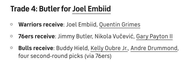 公牛得到:希尔德+乌布雷+德拉蒙德+4个二轮签。