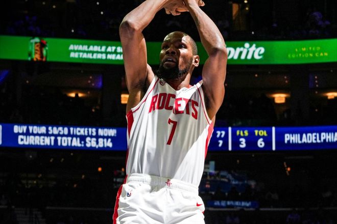 更糟糕的是,防守端被76人打穿,马克西、乔治、乌布雷等人可以说是予取予求。 从比分来看,这是一场从一开始就非常焦灼的比赛,两支球队没有任何一方将分差扩大到两位数的。火箭队这边,除了加时赛上的糟糕表现,其实整体进攻是很出色的。杜兰特全场得到了36分,命中率高达61.9%;还有替补的谢泼德14分,伊森13分,以及阿门的17分9助攻6篮板3抢断,全队合计6人得分上双。但火箭队防守端,今天实在是太差了。所以76人配得上这场胜利,马克西36分10助攻,常规时间和加时赛上的各种关键球让火箭球迷看得心塞;还有恩比德,打出了赛季首次三双,32分15篮板10助攻。