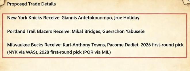 美媒《Fadeaway World》就此提出了一套三方交易方案,引发媒体、球迷热议。具体方案为——
