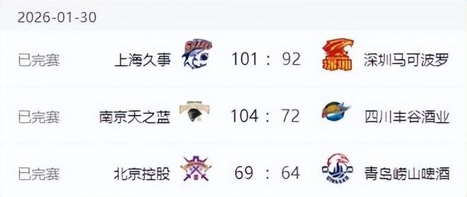 CBA排名更新!广东男篮五连胜,山西连败北京输球,辽宁排名第13
