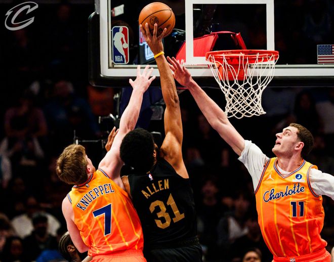 进入26年后,黄蜂攻防效率和净效率值都是联盟前五级别,新秀克尼佩尔化身超级狙击炮,场均18.8分+43%的三分球命中率,辅以场均3.4记三分球,球队围绕米勒+三球+克尼佩尔+布里奇斯的核心框架搭建完毕,也开始一路北伐。而本场比赛布里奇斯继续被禁赛,骑士这边莫布里背靠背负荷管理。回顾一下比赛,开场阿伦利用中投和罚球上分,米勒连中三分球,阿伦反击暴扣。中段三球鲍尔和克尼佩尔内外开花,哈登突破喂饼艾伦后,绕阿伦掩护,急停撤步三分再中,此后罚球追上比分。