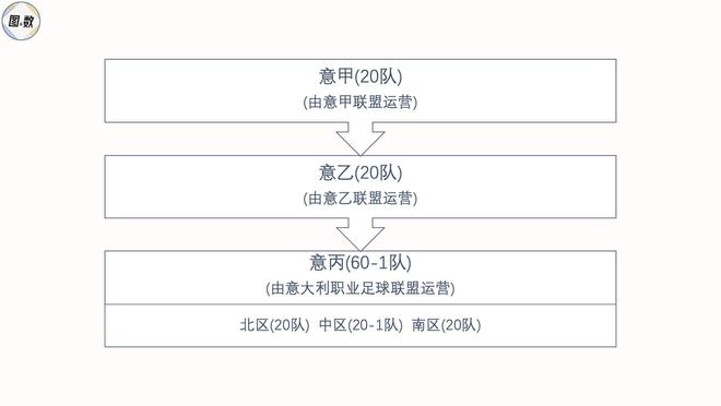 意大利设有3级职业足球联赛:第三级的意丙(Serie C)由意大利职业足球联盟(Lega Italiana Calcio Professionistico)运营,分为北区、中区和南区,每区20队(中区因里米尼破产, 实际只有19队);第二级的意乙和第一级的意甲分别由意乙联盟(Lega Nazionale Professionisti Serie B)和意甲联盟(Lega Calcio Serie A)运营,均为20队参赛;合计在一起,意大利拥有接近100家职业足球俱乐部,而且短期内不会达到100家,因为意丙有意甲球队的二线队(尤文图斯/国际米兰/亚特兰大等),类似于中乙有中超球队的二线队。