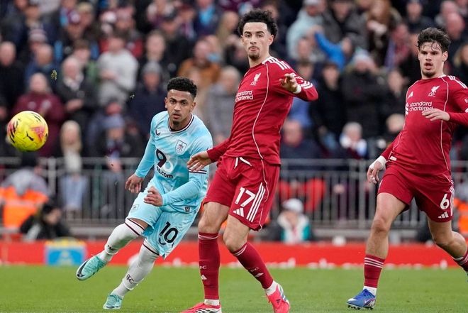 第31分钟,加克波在禁区内被放倒。裁判判罚点球。索博斯洛伊主罚,他的射门击中了横梁,浪费了一次绝佳机会。2分钟后,加克波在禁区前沿拔脚怒射,被扑了出去。第42分钟,场上的僵局终于被打破了。琼斯在底线附近把球回传给维尔茨。维尔茨停球后爆射破门!半场结束,利物浦1-0领先伯恩利。