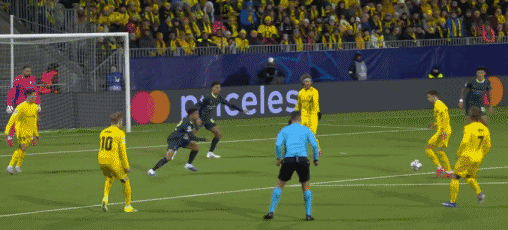 伤停补时第1分钟,谢尔基左路突破低平球传中,哈兰德包抄起脚射门,可惜又擦着立柱偏出,曼城半场2球落后。