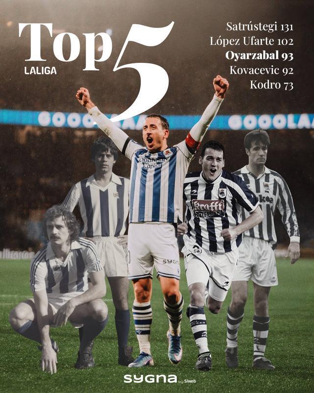 皇家社会队长奥亚萨瓦尔在这场比赛中首发出场,他打入了2粒技惊四座的进球。
