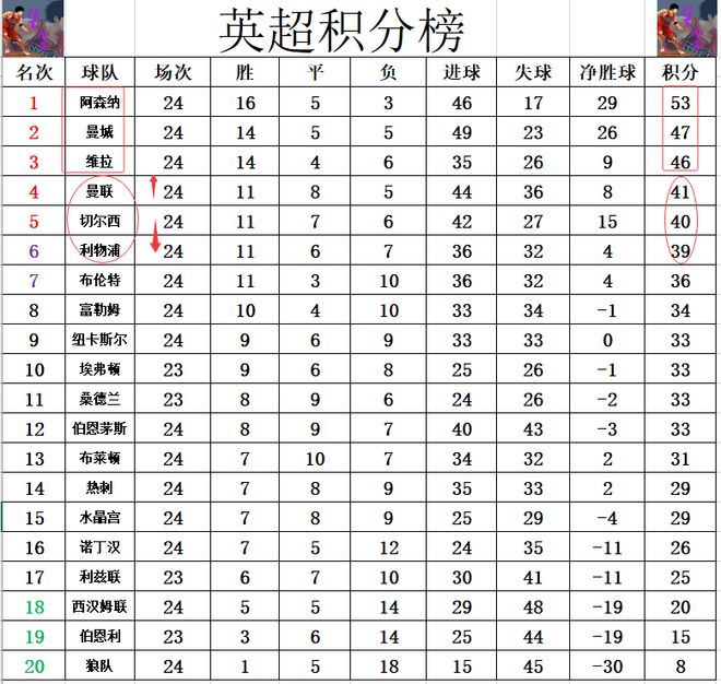 英超最新积分战报 阿森纳又开心!曼城2球领先遭绝平 曼联重回前4