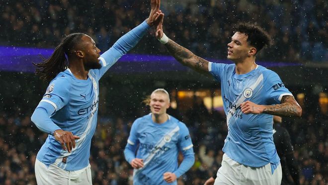 第24分钟,曼城如法炮制,罗德里将球分到右路,努内斯果断传中,哈兰德头球没能顶到,皮球砸在博格的头上造成乌龙助攻,塞梅尼奥抢射破门。