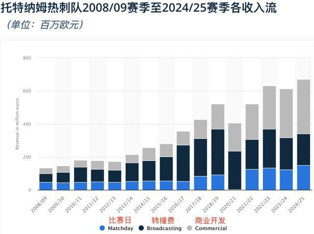 热刺目前的官方球衣赞助商是耐克,双方签约到2033年,每年赞助金额约3000万英镑。而球衣胸前广告赞助商是友邦保险,合同价值每年4000万英镑,到2027年夏天结束。从2027年7月开始,友邦将变成热刺的“全球训练合作伙伴”——其品牌标识只会出现在训练服上——这份合同到2032年,每年1000-1500万英镑。如果热刺的情况没有改善,他们铁定很难再找到每年肯掏4000万的赞助商。